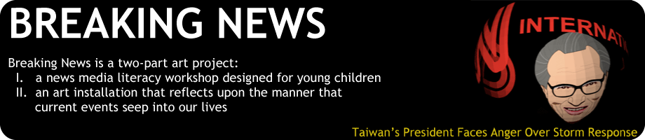 Based on the premise that we live in a media-saturated world, the project seeks to investigate how young children digest major world events such as Obama’s election, Michael Jackson’s death, Swine Flu - inescapable "realities" that momentarily consume media outlets and seep into our lives. The content generated by the children in the workshop is integrated into the news media visualization presented as part of the gallery installation. The visualization itself consists of a textual feed of current headlines accompanied by computer-rendered illustrations of personalities who have established an understanding of news media in the United States. The illustrations and text help generate new interpretations of what we consider "the news."