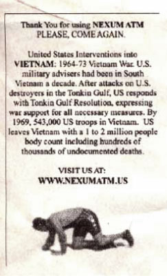 The user then receives a receipt that details the history of invasions/attacks by the US into the selected country and the web site is given.